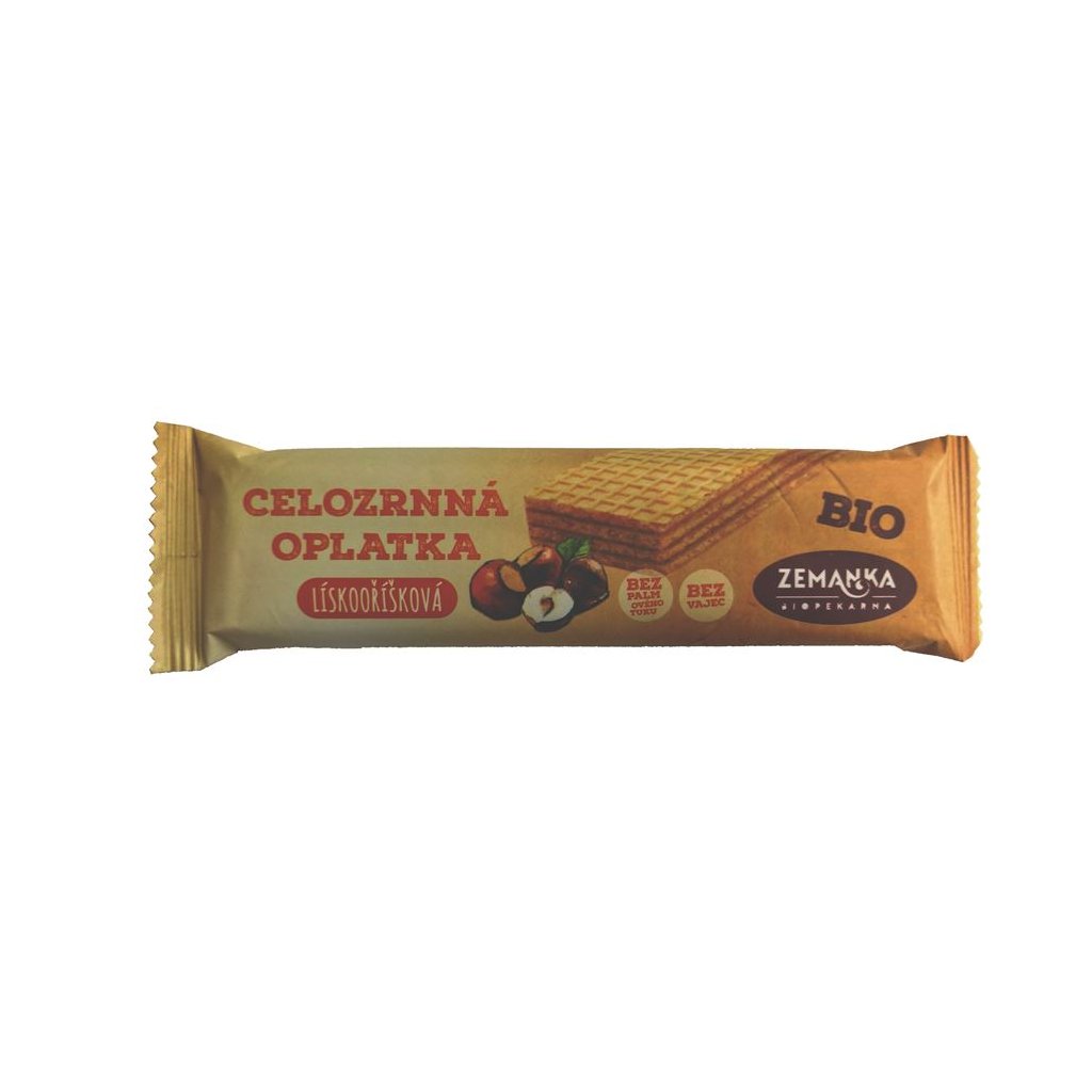 Křupavá BIO oplatka z jednozrnky s jemnou lískooříškovou chutí je poctivá sladká svačina bez palmového oleje a zbytečných přísad.