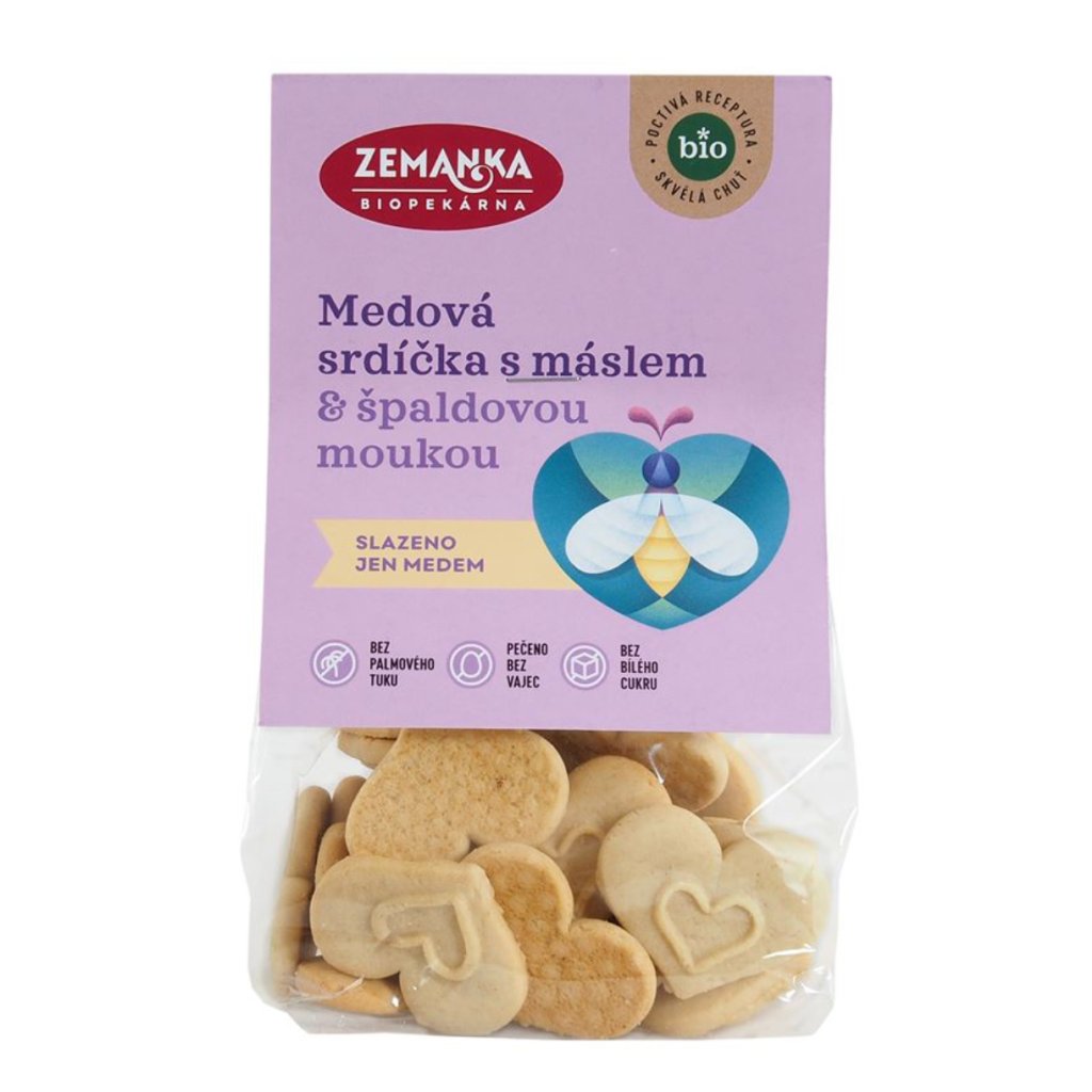 Biopekárna Zemanka Medová bio srdíčka s máslem 100g