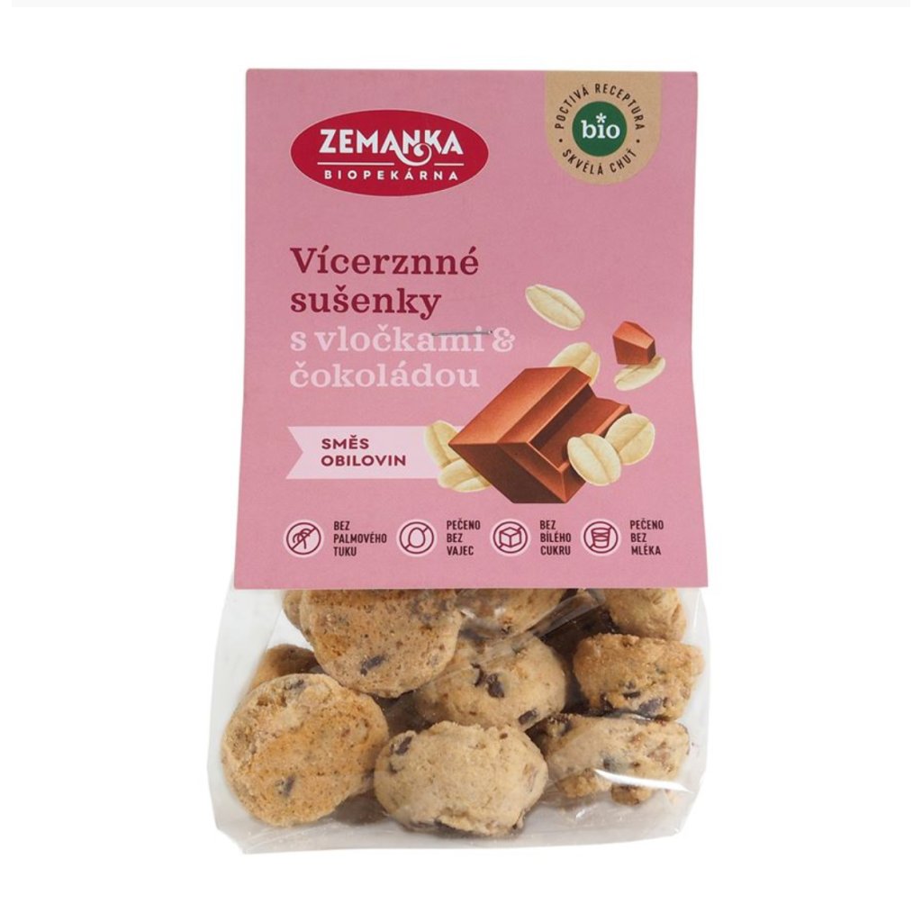 Biopekárna Zemanka Vícezrnné bio sušenky s vločkami a čokoládou 100g