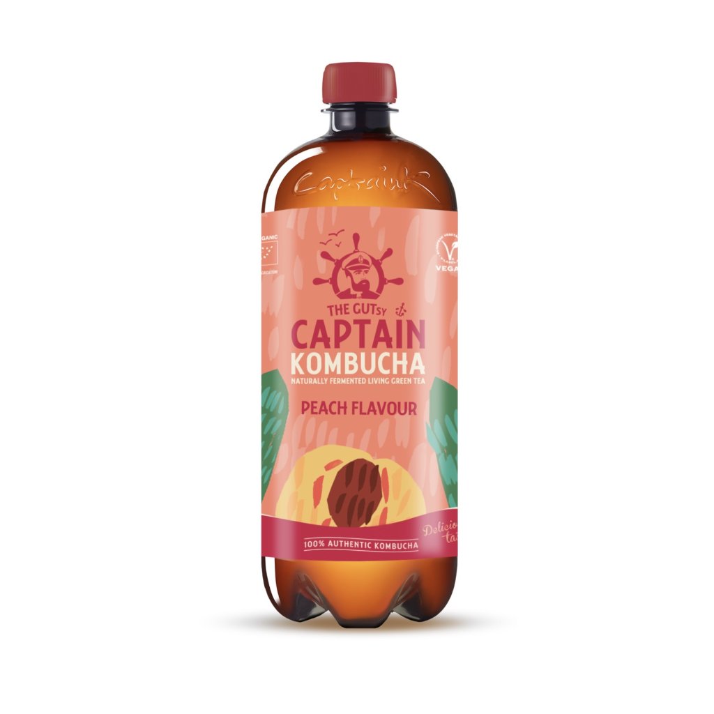 Složení: Bio kombucha (filtrovaná voda, bio třtinový cukr, bio zelený čaj 0,4 %, kultury kombuchy, oxid uhličitý, přírodní broskvové aroma 0,06 %, probiotické bakterie Bacillus coagulans.