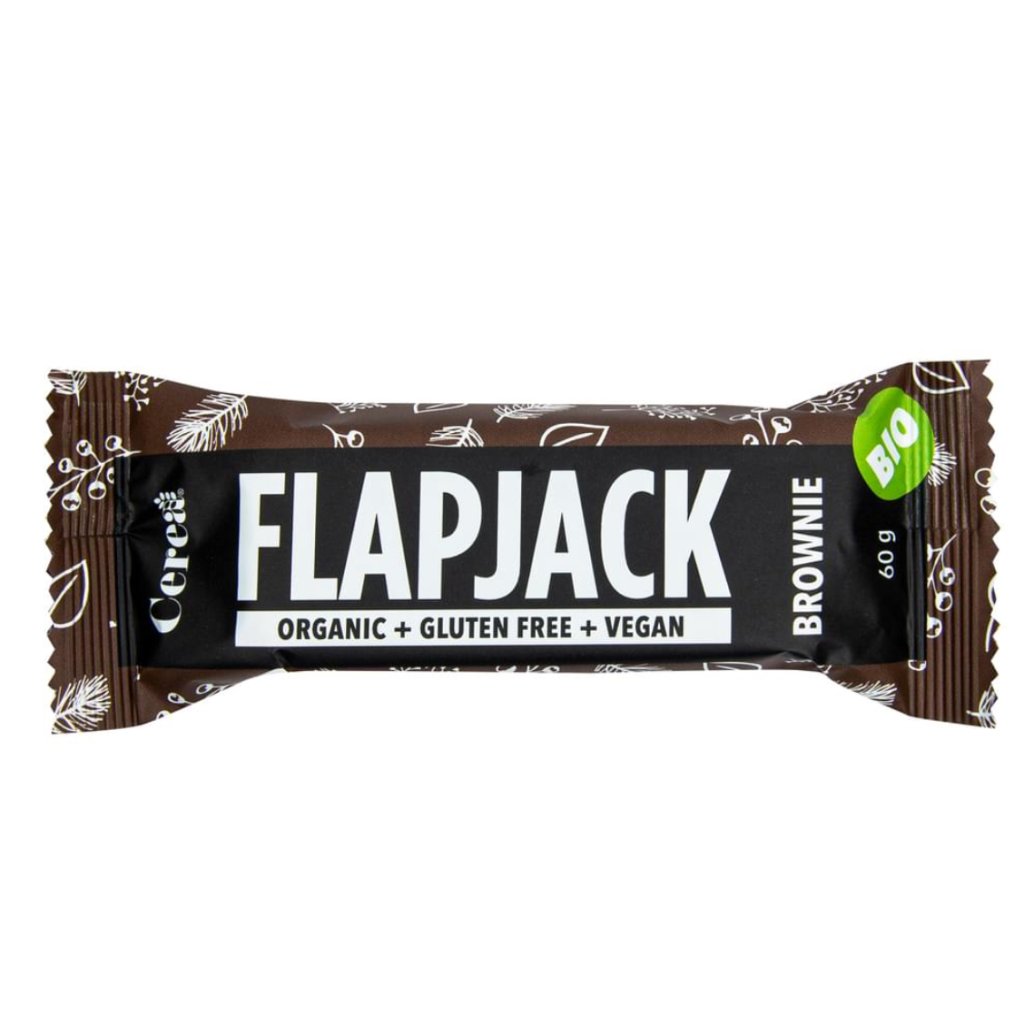 Flapjack s brownie příchutí v BIO kvalitě, bez lepku – chutná svačina vhodná pro celiaky, ideální na cesty, do školy i do práce.