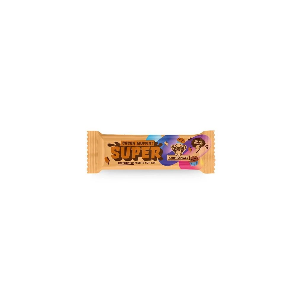 Chimpanzee Super bar - Cocoa Muffin je energetická tyčinka se sušeným ovocem. Obsahuje přírodní sacharidy pro dlouhodobou energii + dávku kofeinu z guarany.