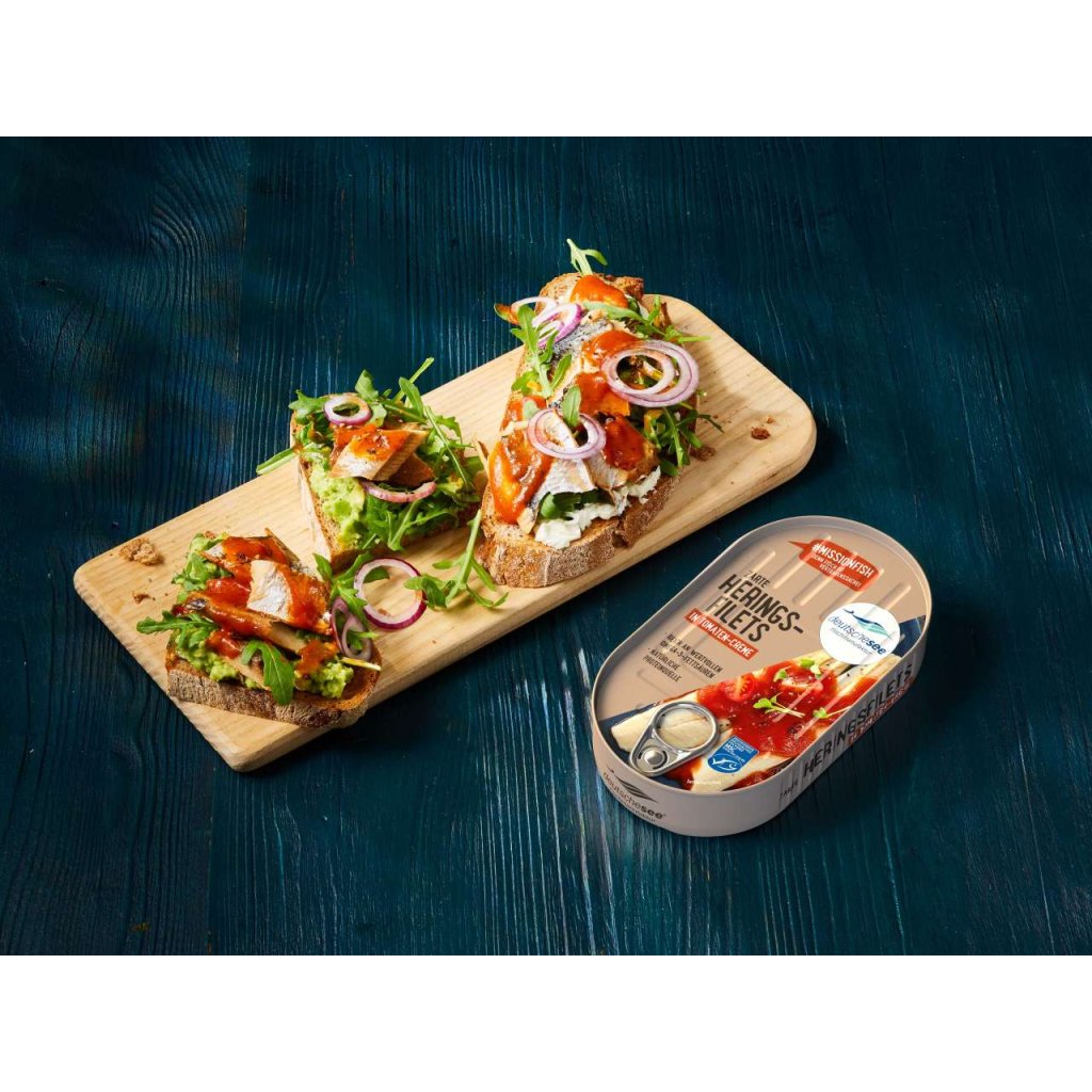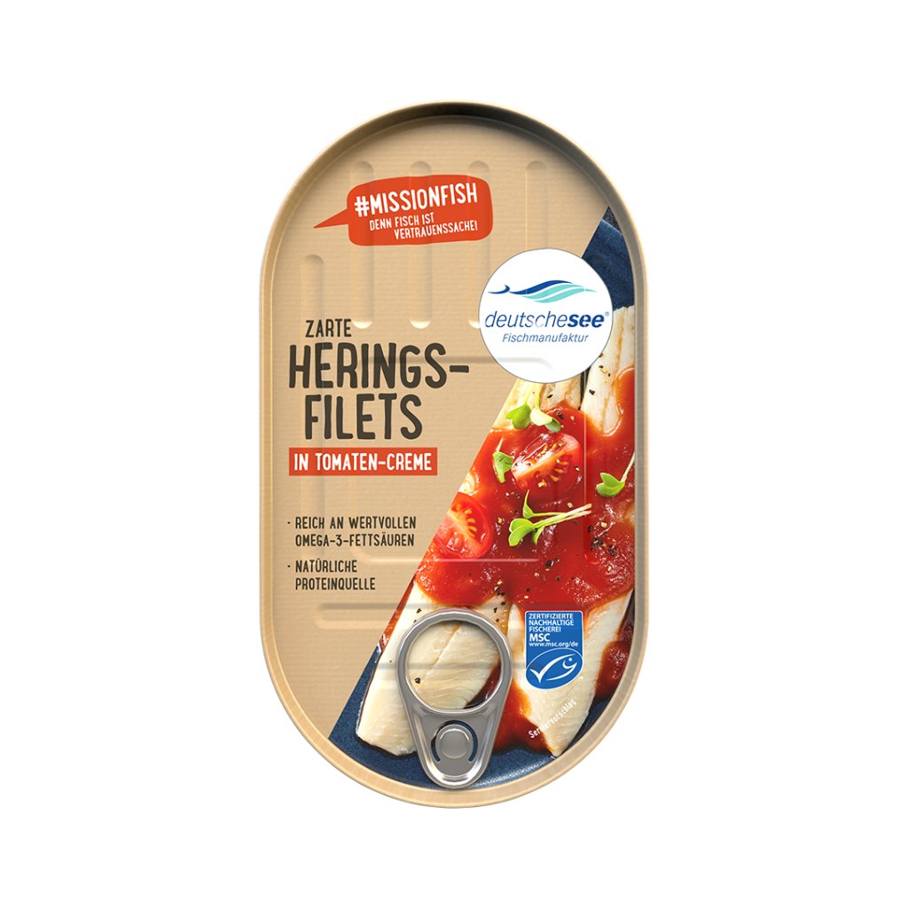 1 konzerva filetů ze sledě v rajčatovém krému (Deutsche See)