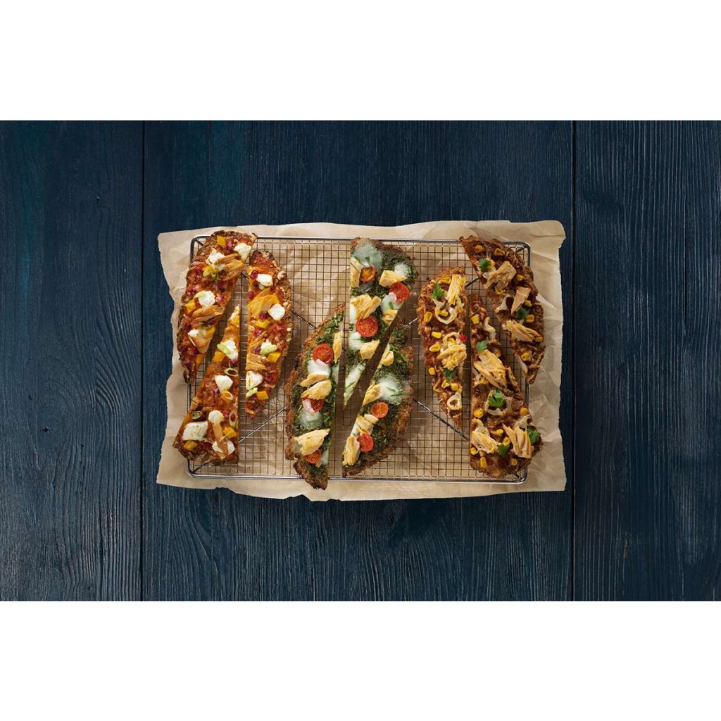 3. Tuňákovou směs rozetřete co nejtenčím a co nejkulatějším způsobem na plech vyložený pečicím papírem a pečte asi 10 minut. Jakmile je tuňákový základ na pizzu lehce zlatavě hnědý, potřete ho kečupem a posypte požadovanými ingrediencemi. (Sýr, šunka).