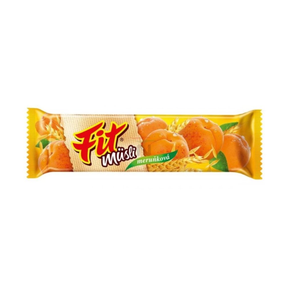 Škrobový sirup, ovesné a pšeničné vločky 25 %, meruňky 13 % (meruňky, konzervant: oxid siřičitý, rýžová mouka), jablka, extrudovaná kukuřice, rostlinný tuk (palmový), emulgátor sojový lecitin, aroma.