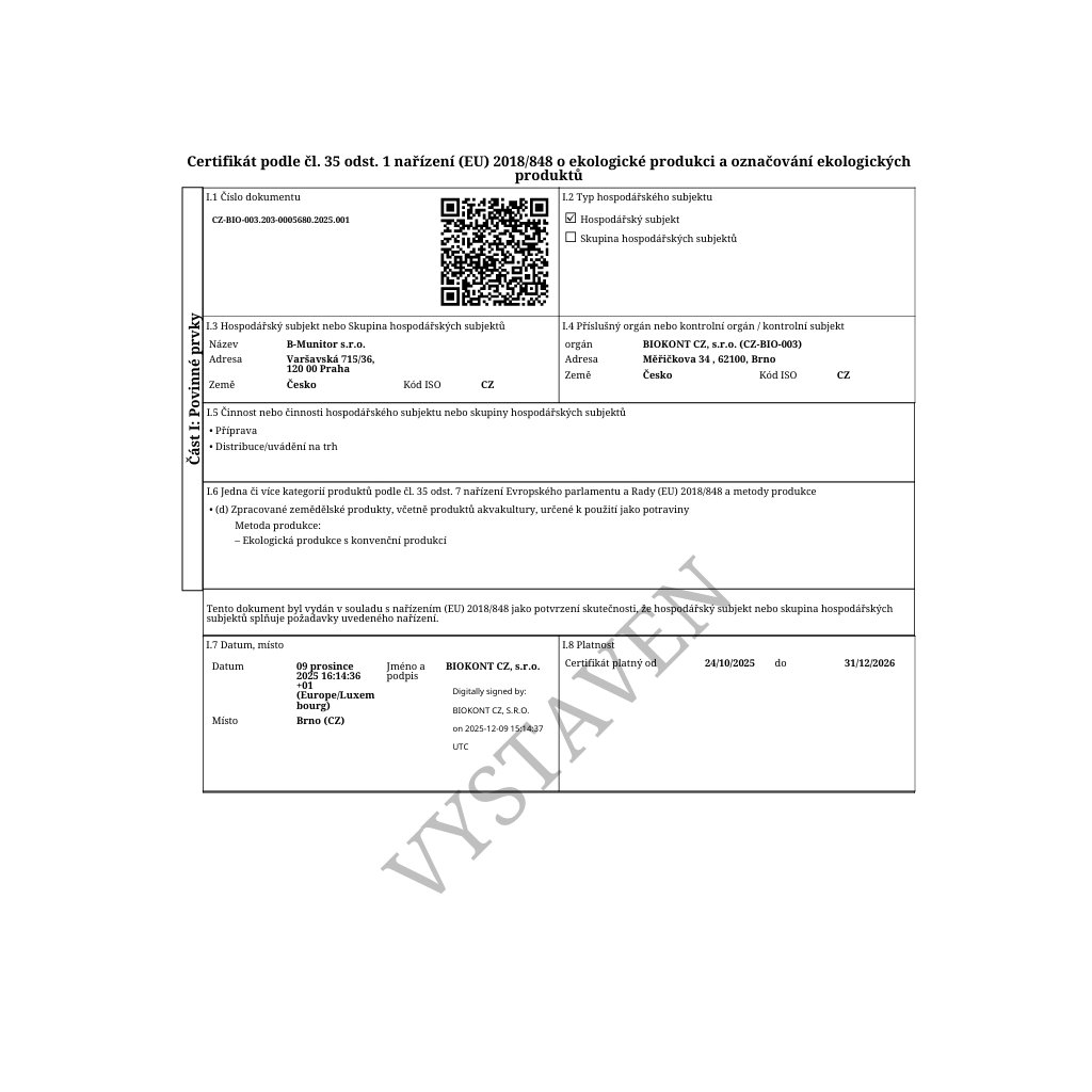 Certifikát: CZ-BIO-003.203-0005680.2025.001