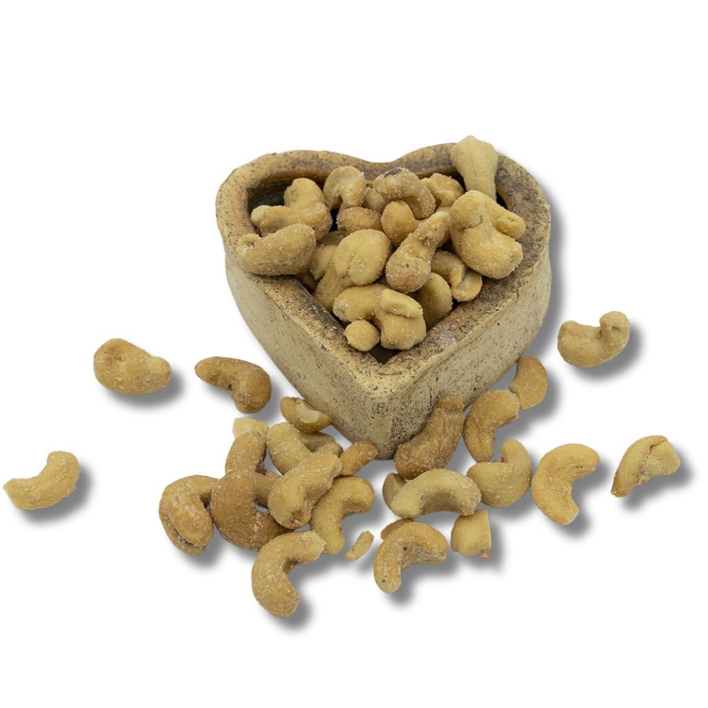 Kešu oříšky W320 pražené v České republice (Telč), jemně uzené a dochucené špetkou soli nejlépe chutnají u sklenky dobrého vína, ale i jen v salátu.