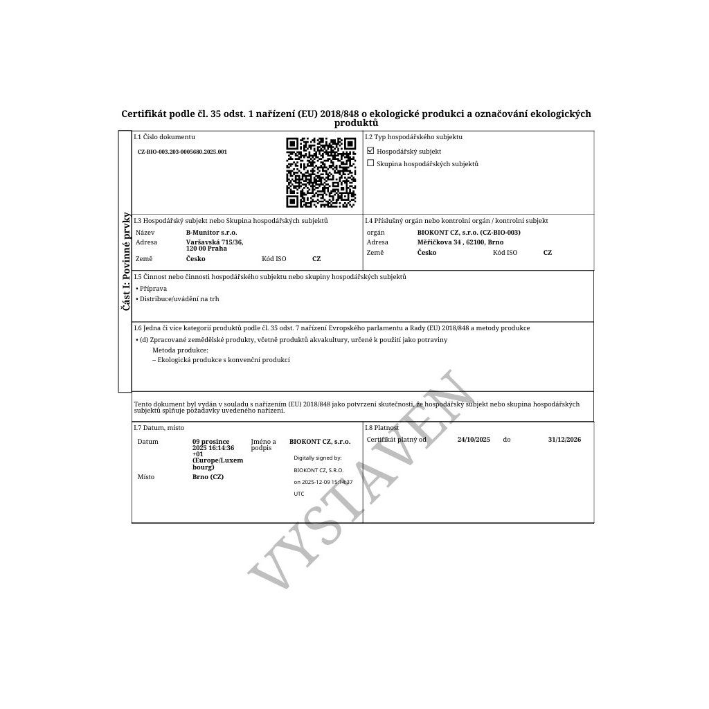 Certifikát: CZ-BIO-003.203-0005680.2025.001