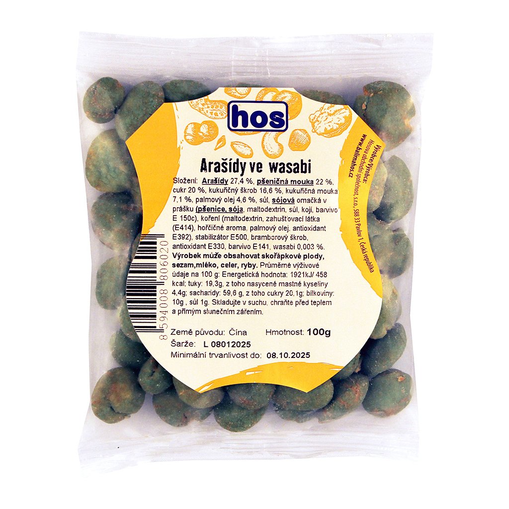 Složení: Arašídy 27,4 %, pšeničná mouka 22 %, cukr 20 %, kukuřičný