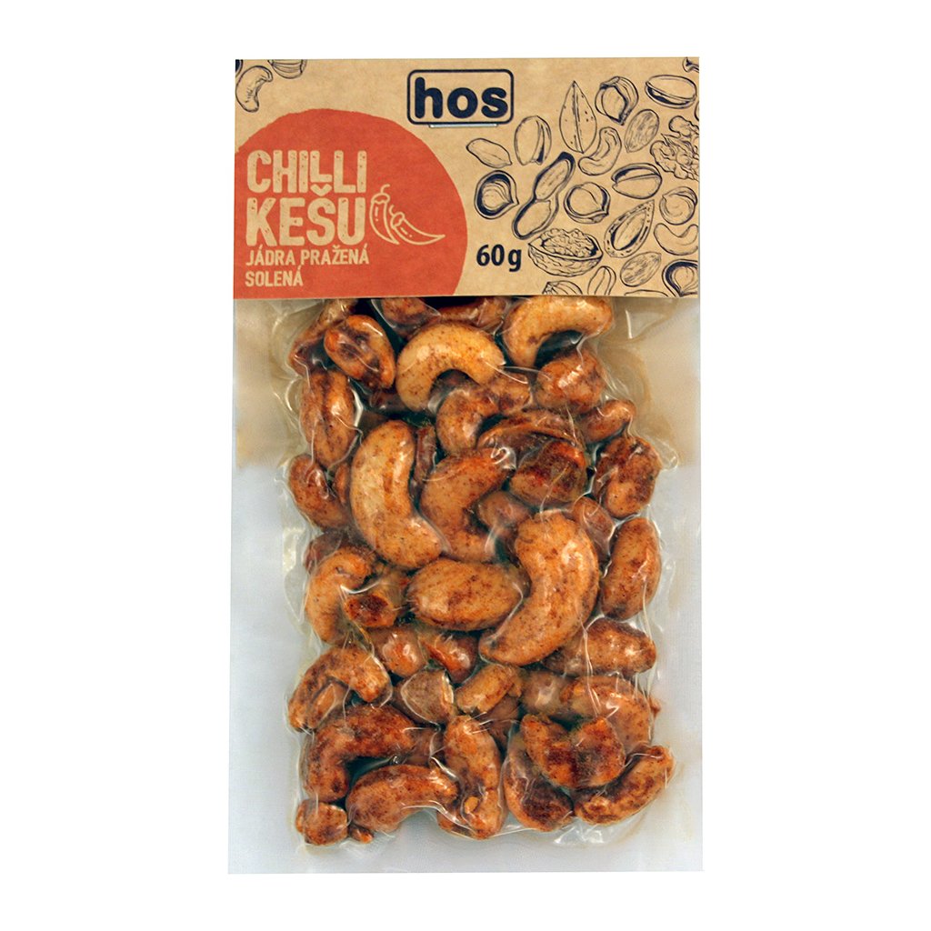 Výhodou je vakuové balení, které prodlužuje trvanlivost kešu a uchovává plnou pikantní chuť chilli.