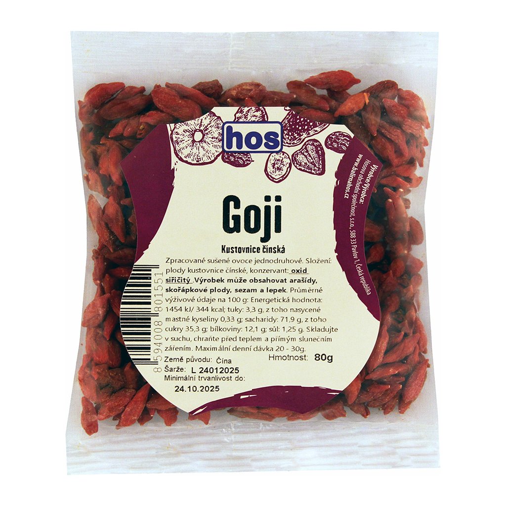 Složení: Goji, plody kustovnice čínské, konzervant: oxid siřičitý.