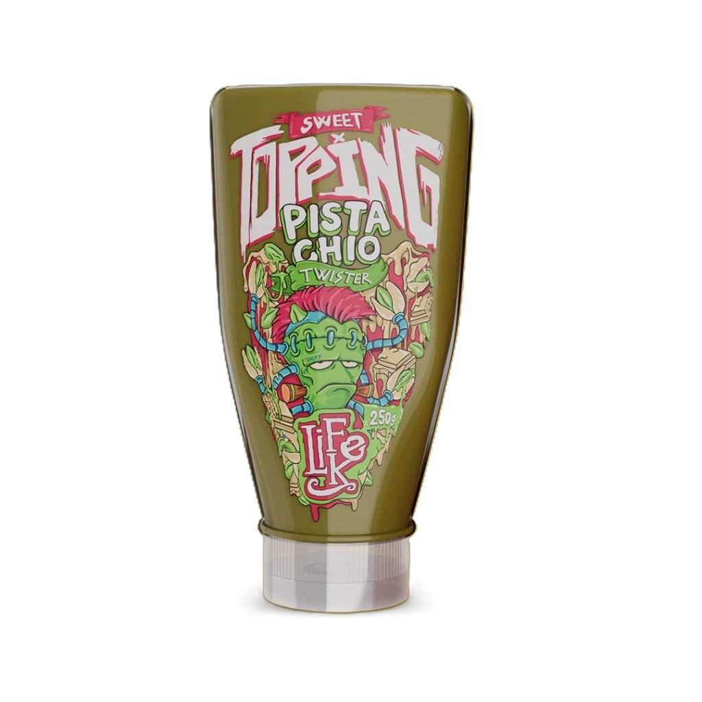 LifeLike Sweet Topping Pistachio Twister 250g je lahodný krémový topping s bohatou pistáciovou chutí, ideální na palačinky, vafle, kaše, zmrzlinu i dezerty, kterým dodá jemnou oříškovou eleganci.