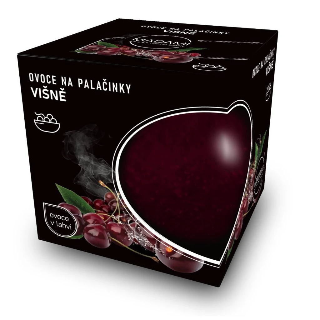 MADAMI Ovoce na palačinky Višně 500g je hustá a šťavnatá ovocná směs s téměř 60 % obsahem višní, která se snadno roztírá, neteče a je ideální pro přípravu palačinek, lívanců nebo dezertů plných autentické ovocné chuti.