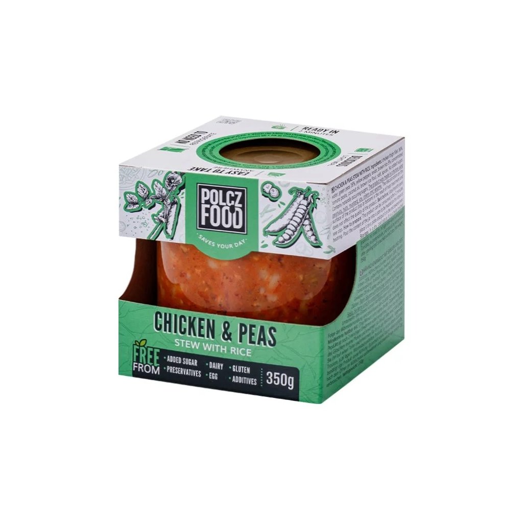Jemné kuřecí maso s hráškem a rýží tvoří rychlé a chutné kompletní jídlo. Perfektní volba pro oběd nebo večeři, bohaté na bílkoviny a lehce stravitelné. Hotový pokrm připravený k okamžitému ohřátí a konzumaci.