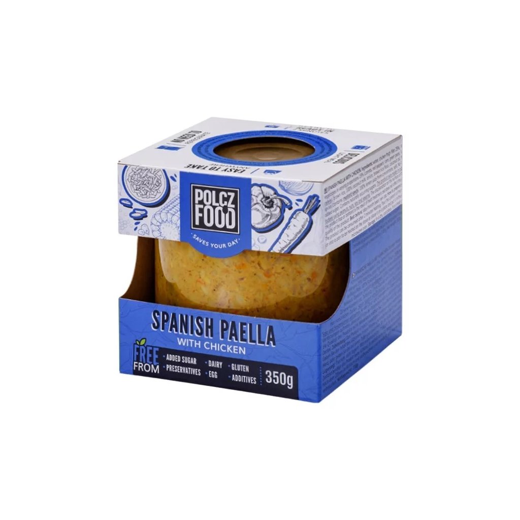 Autentická španělská paella s kuřecím masem, rýží, zeleninou a typickým kořením. Lahodná kombinace chutí inspirovaná tradiční španělskou kuchyní, připravená rychle a snadno k okamžitému servírování. Perfektní pro rychlý oběd nebo večeři.