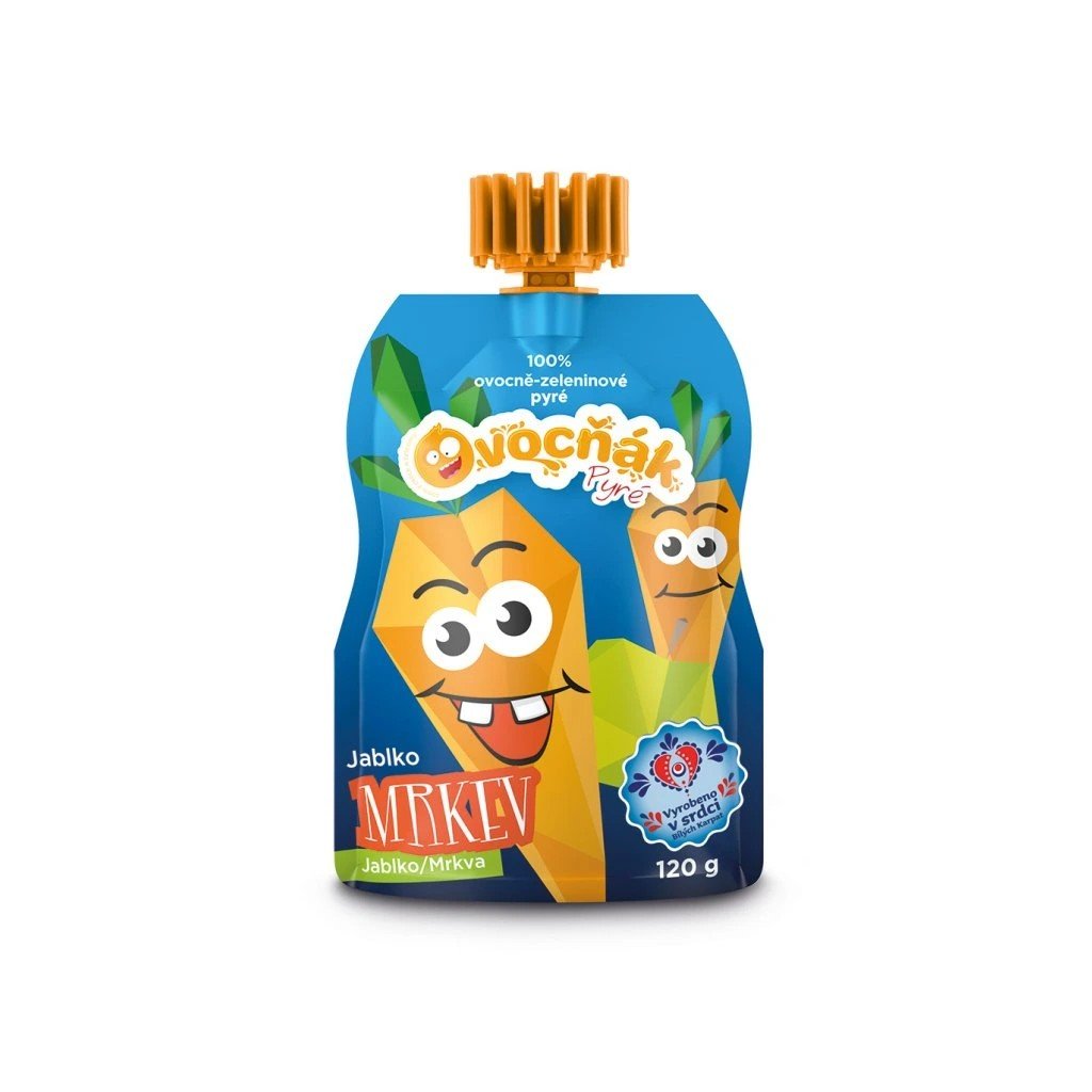 Mrkvička pro zdravá očička je 100% přírodní ovocno-zeleninové pyré z jablek a mrkve bez přidaného cukru, ideální jako zdravá svačinka doma i na cestách.