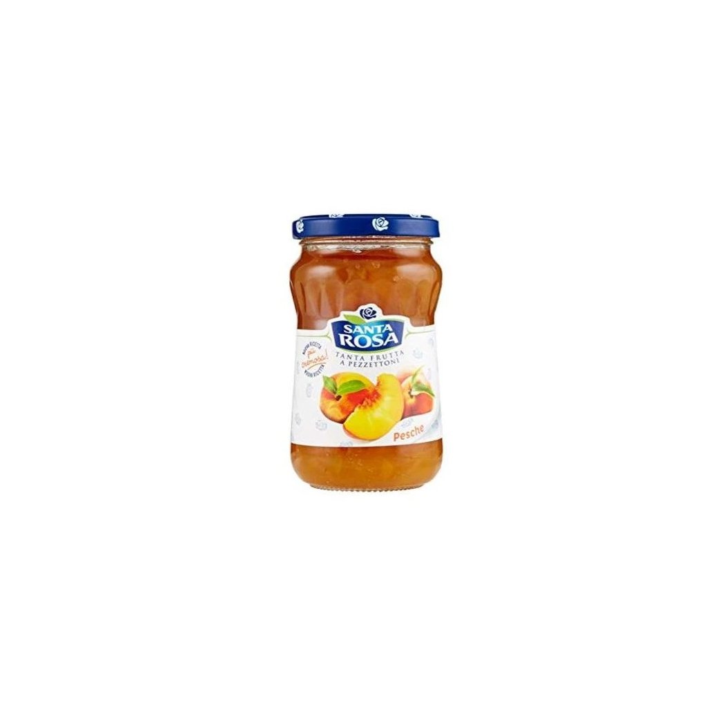 Santa Rosa broskvový džem 350g je tradiční italský ovocný džem z pečlivě vybraných zralých broskví s bohatou sladkou vůní a šťavnatou ovocnou chutí, kterou si skvěle vychutnáte namazanou na pečivo, v jogurtech, palačinkách či dezertech a která přináší autentický zážitek pravé italské marmelády.