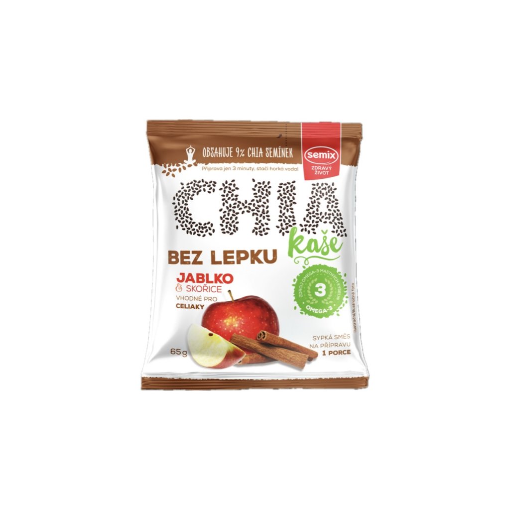 Semix Chia kaše – jablko a skořice, bez lepku: lahodná a výživná snídaně plná omega-3 a vlákniny pro zdravý start dne.